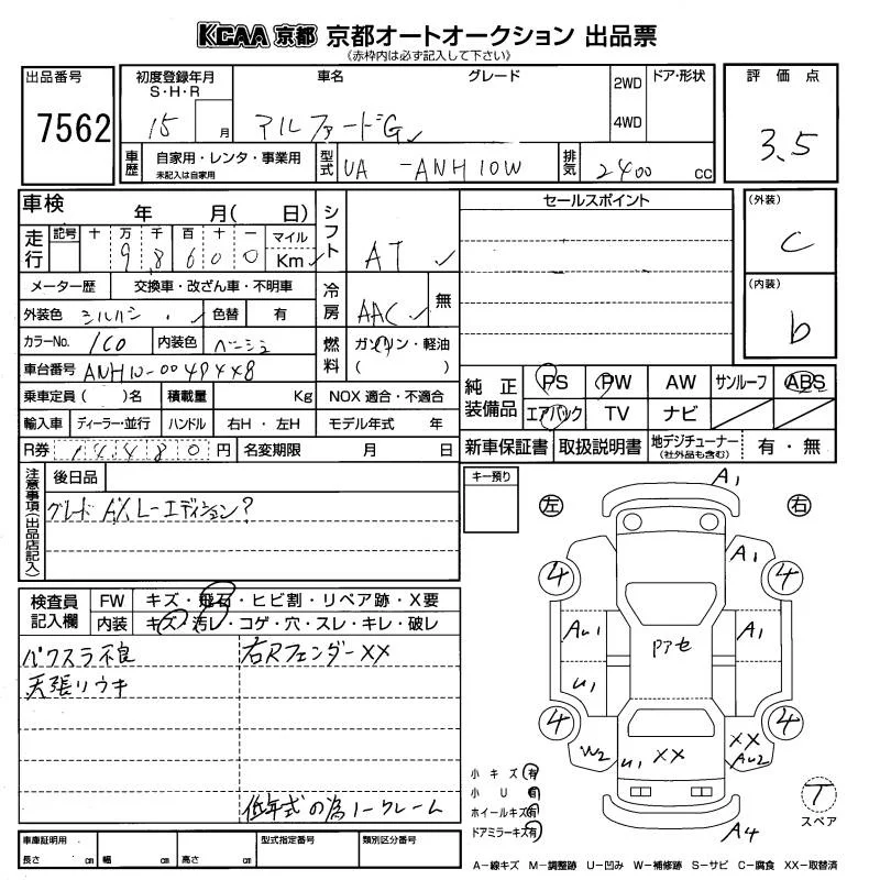 - Кузов: ANH10W