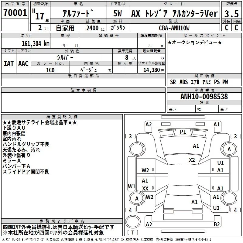 - Комплектация: AX トレゾア Alcantara Ver