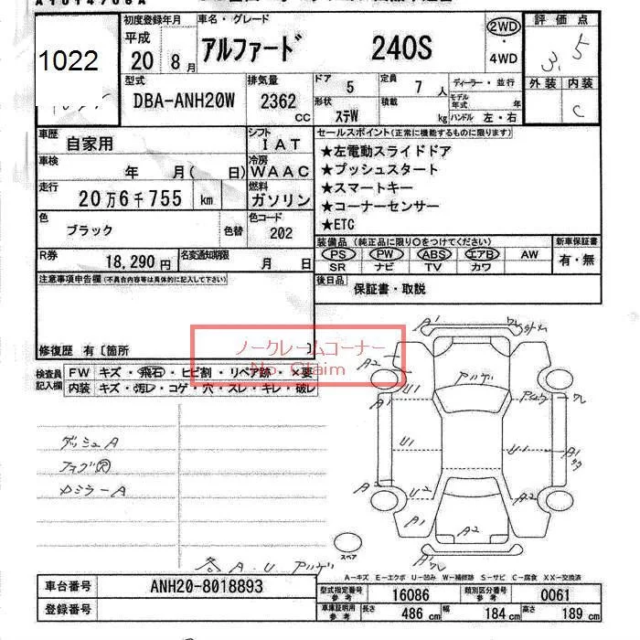 240G | DBA-ANH20W | 2AZ-FE | FF | CVT | 2362cc | 170ps(125kW)/6000rpm | AИ-92 | 3 600 000 | |