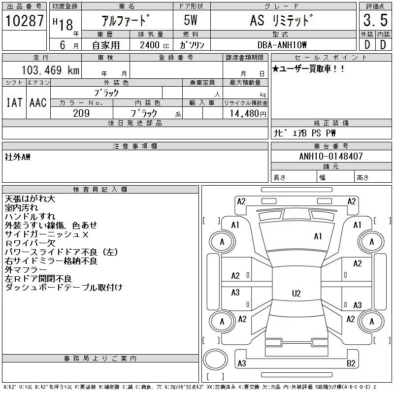 - Кузов: ANH10W