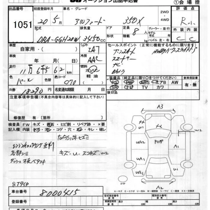 350G | DBA-GGH25W | 2GR-FE | Full-time 4WD | 6AT | 3456cc | 280ps(206kW)/6200rpm | AИ-95 | 4 129 000 | |