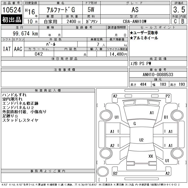 - Кузов: ANH10W