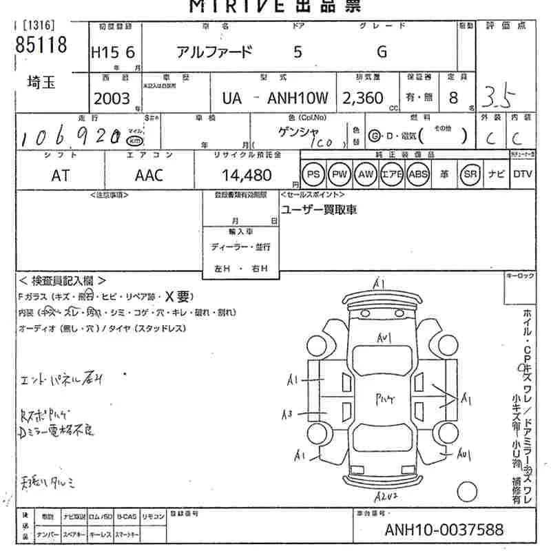 - Кузов: ANH10W