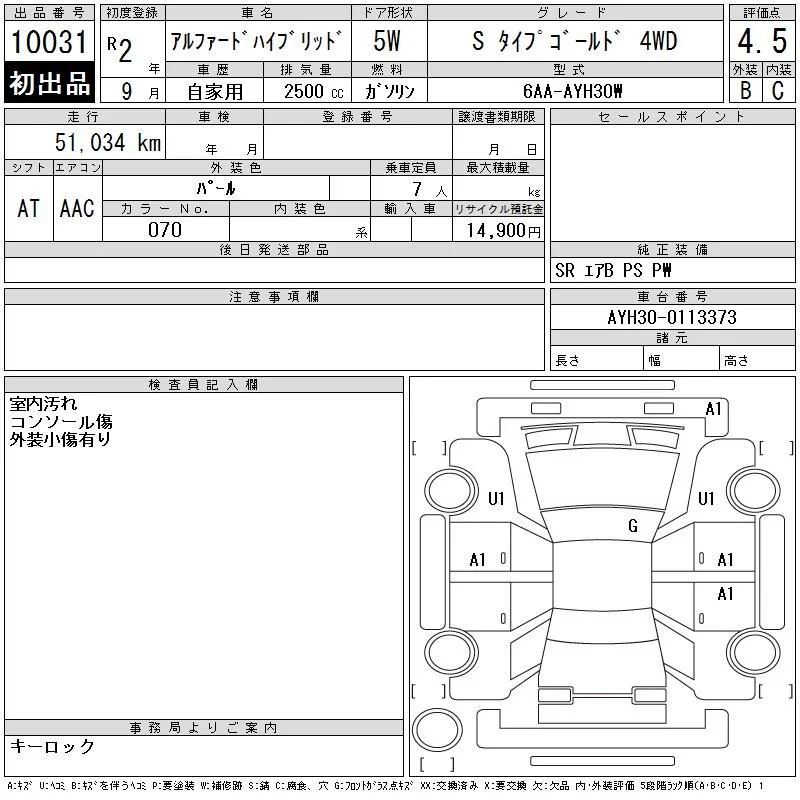2.5S TYPE GOLD | 3BA-AGH35W | 2AR-FE | Full-time 4WD | CVT | 2493cc | 182ps(134kW)/6000rpm | AИ-92 | 4 495 000 | |