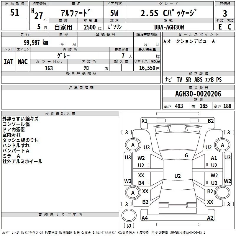 2.5S C PACKAGE | DBA-AGH35W | 2AR-FE | Full-time 4WD | CVT | 2493cc | 182ps(134kW)/6000rpm | AИ-92 | 4 424 073 | |