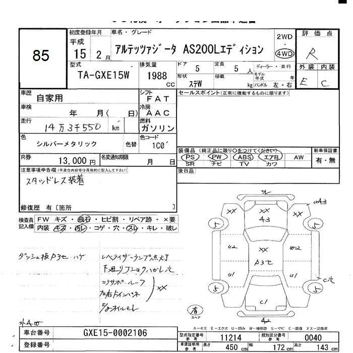 - Кузов: GXE15W