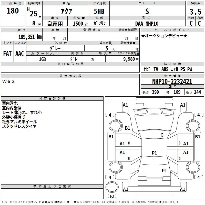 Toyota AQUA 2013 • 1020860 ₽ под ключ из Японии