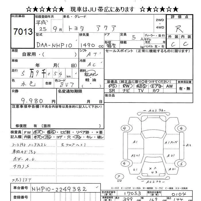 Toyota AQUA 2013 • 1046485 ₽ под ключ из Японии