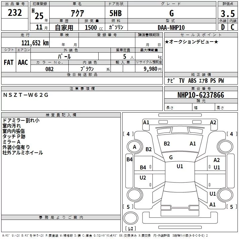 Toyota AQUA 2013 • 1051634 ₽ под ключ из Японии