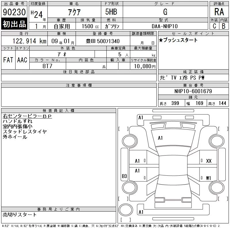 Toyota AQUA 2012 • 1093228 ₽ под ключ из Японии