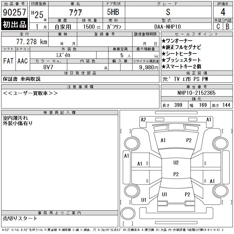 Toyota AQUA 2013 • 1118582 ₽ под ключ из Японии