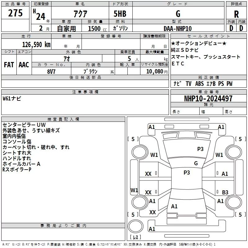 Toyota AQUA 2012 • 1041397 ₽ под ключ из Японии