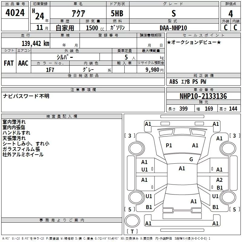 Toyota AQUA 2012 • 1052585 ₽ под ключ из Японии