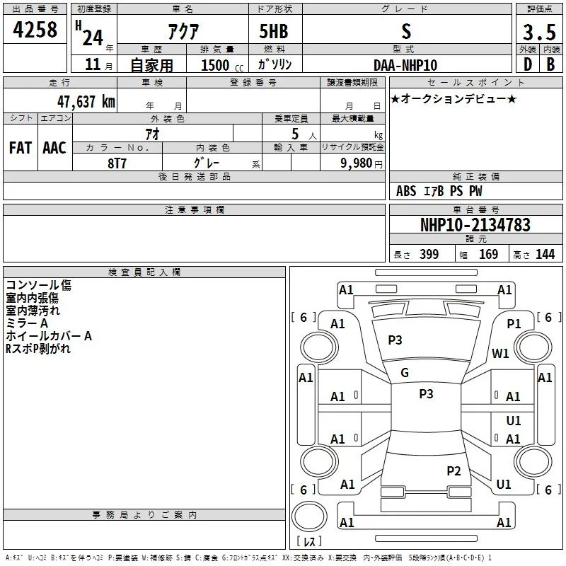 Toyota Aqua 2012 • 1087453 ₽ под ключ из Японии