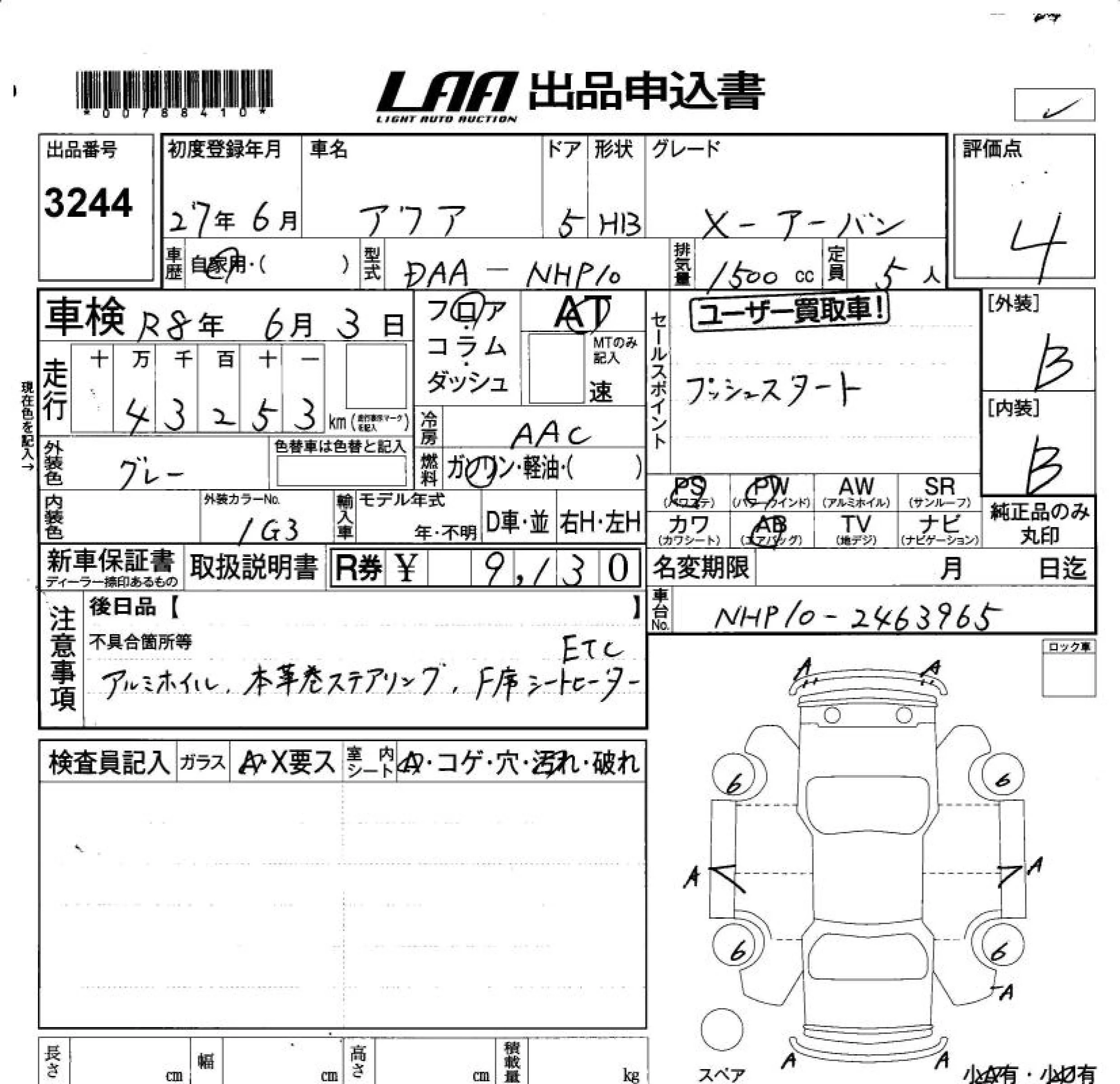 Toyota AQUA 2015 • 1339575 ₽ под ключ из Японии
