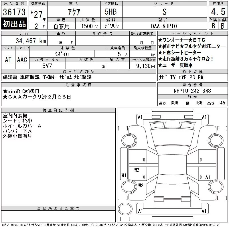 Toyota AQUA 2015 • 1322277 ₽ под ключ из Японии