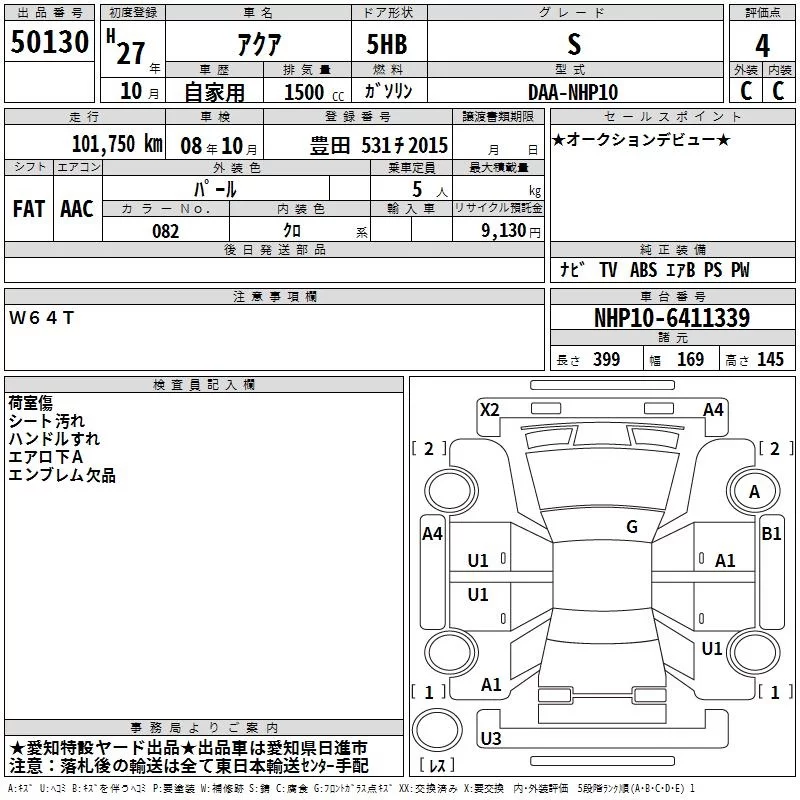 Toyota AQUA 2015 • 1174033 ₽ под ключ из Японии