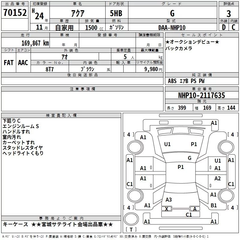 Toyota AQUA 2012 • 1051776 ₽ под ключ из Японии