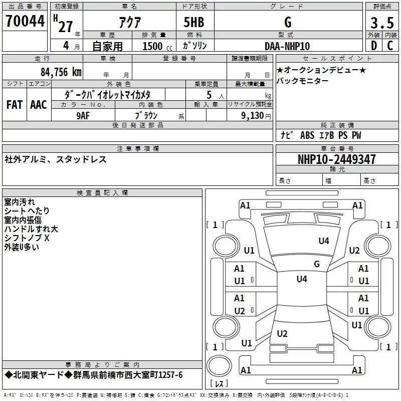 Toyota AQUA 2015 • 1101845 ₽ под ключ из Японии