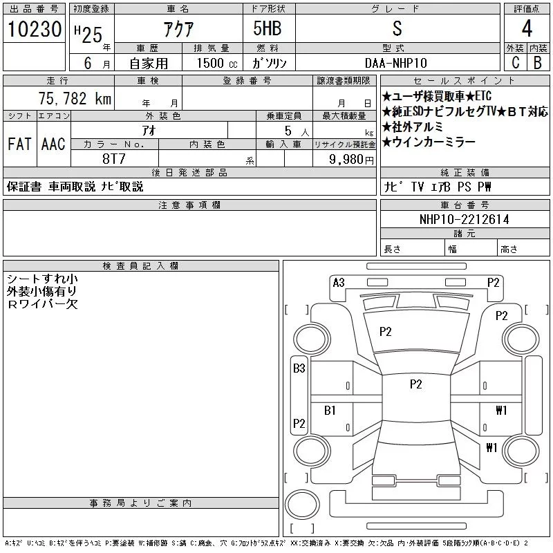 Toyota AQUA 2013 • 1086188 ₽ под ключ из Японии