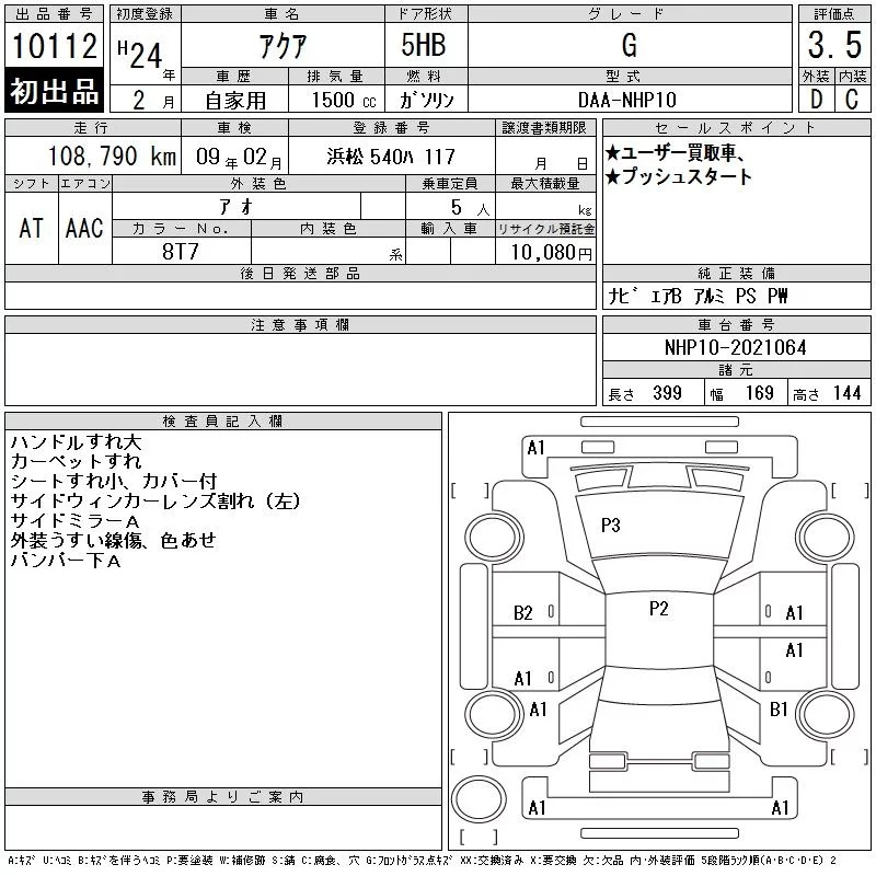 Toyota AQUA 2012 • 1082097 ₽ под ключ из Японии