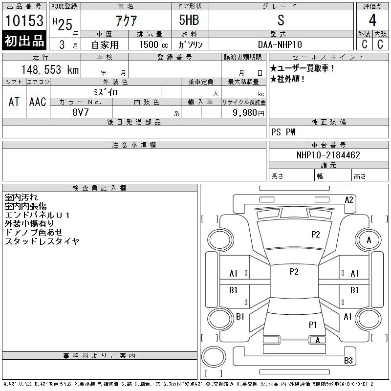 Toyota AQUA 2013 • 1049474 ₽ под ключ из Японии
