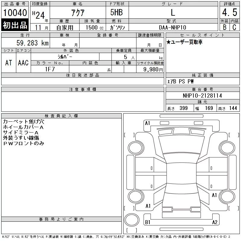Toyota AQUA 2012 • 1126174 ₽ под ключ из Японии