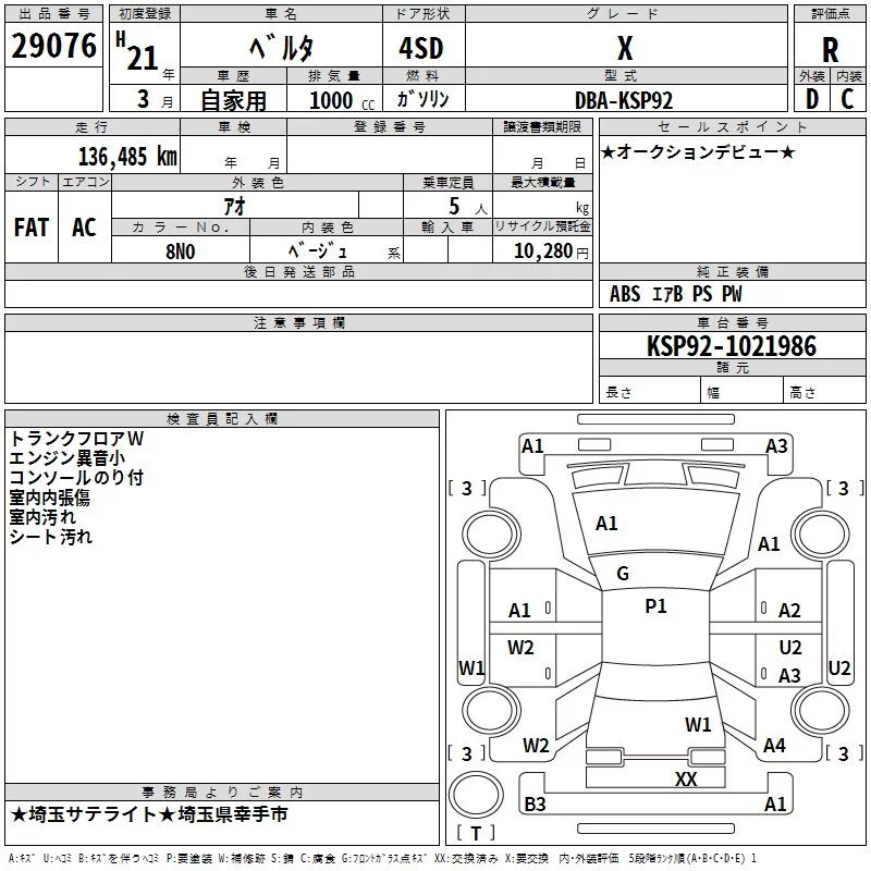 X | DBA-SCP92 | 2SZ-FE | FF | CVT | 1296cc | 87ps(64kW)/6000rpm | AИ-92 | 1 415 000 | |