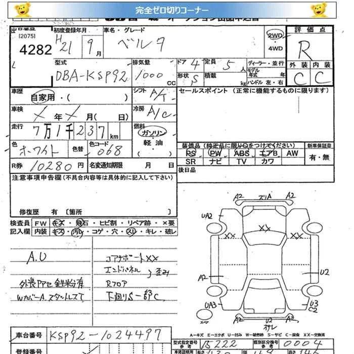 X | DBA-KSP92 | 1KR-FE | FF | CVT | 996cc | 71ps(52kW)/6000rpm | AИ-92 | 1 340 000 |