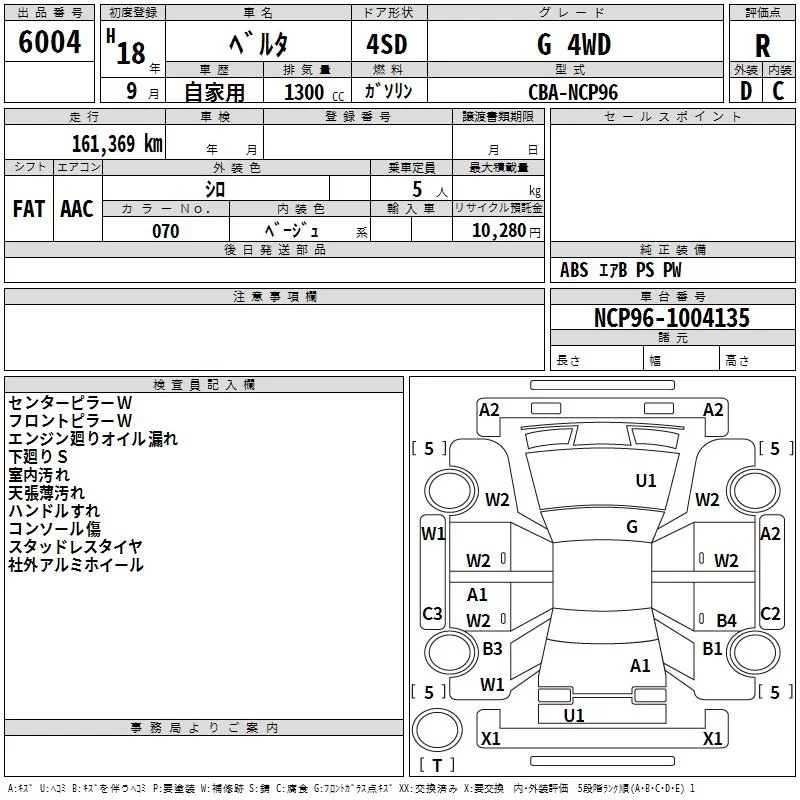 X BUSINESS A PACKAGE | CBA-NCP96 | 2NZ-FE | Full-time 4WD | 4AT | 1298cc | 87ps(64kW)/6000rpm | AИ-92 | 1 438 500 | |