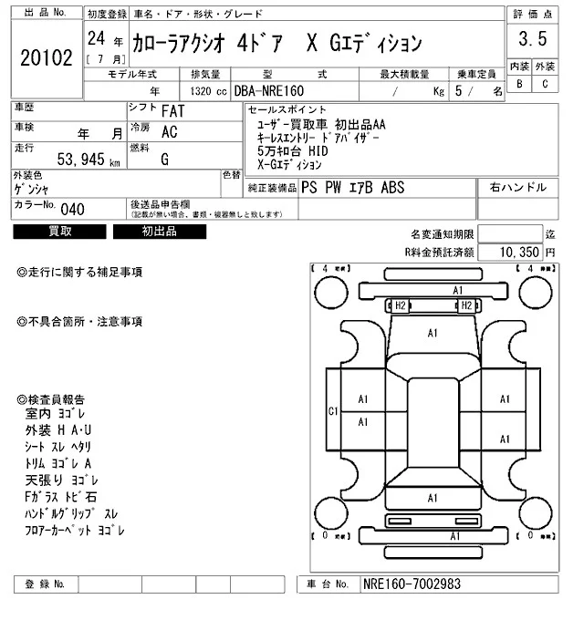 1.3X G EDITION | DBA-NRE160 | 1NR-FE | FF | CVT | 1329cc | 95ps(70kW)/6000rpm | AИ-92 | 1 605 000 | |