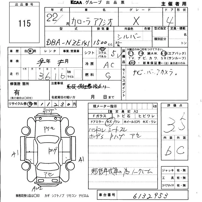 X | DBA-NZE141 | 1NZ-FE | FF | CVT | 1496cc | 110ps(81kW)/6000rpm | AИ-92 | 1 440 000 |