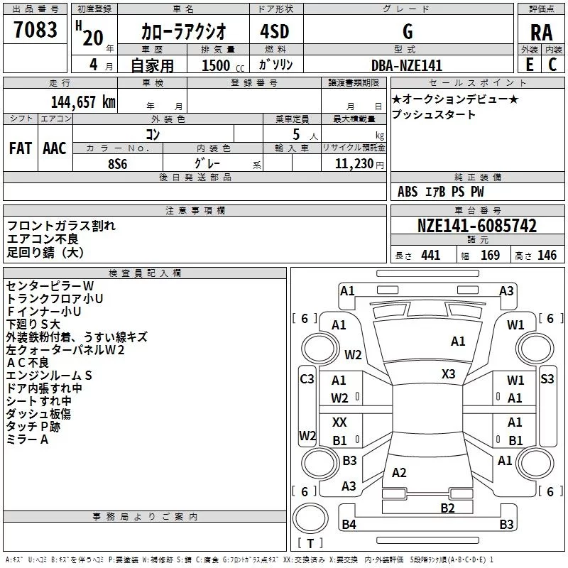 X | DBA-NZE141 | 1NZ-FE | FF | CVT | 1496cc | 110ps(81kW)/6000rpm | AИ-92 | 1 440 000 | |