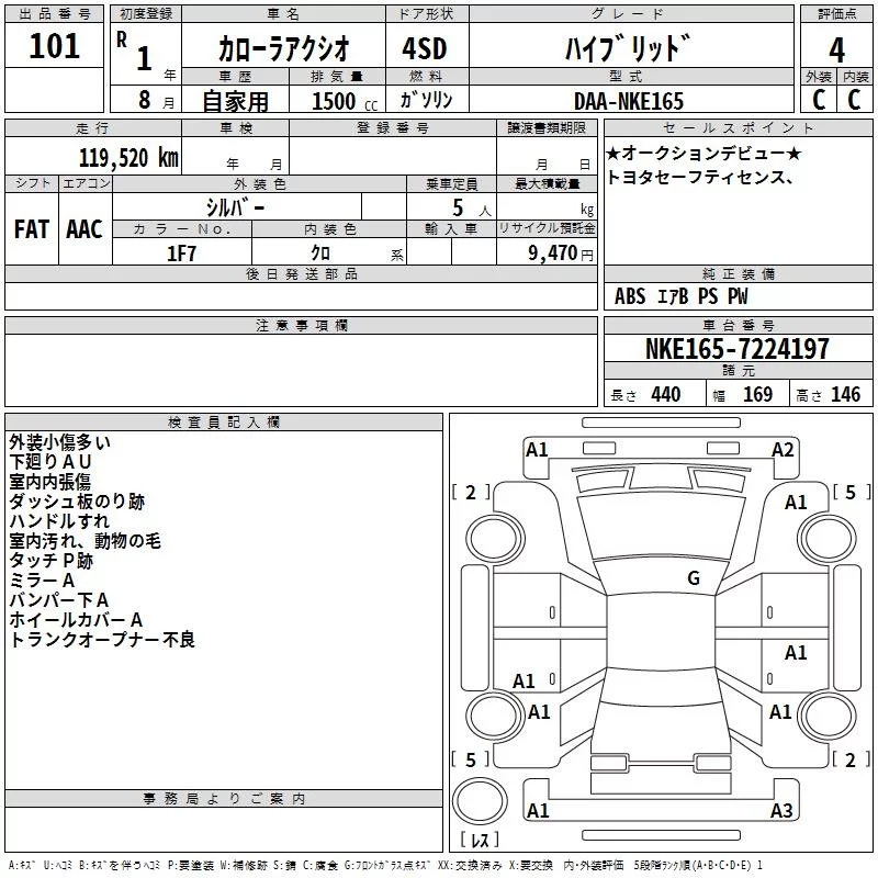 HYBRID EX | DAA-NKE165 | 1NZ-FXE | FF | CVT | 1496cc | 74ps(54kW)/4800rpm | AИ-92 | 2 084 400 | |