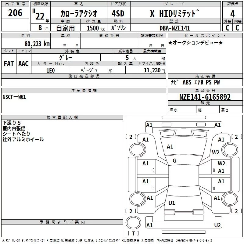 X | DBA-NZE141 | 1NZ-FE | FF | CVT | 1496cc | 110ps(81kW)/6000rpm | AИ-92 | 1 440 000 |