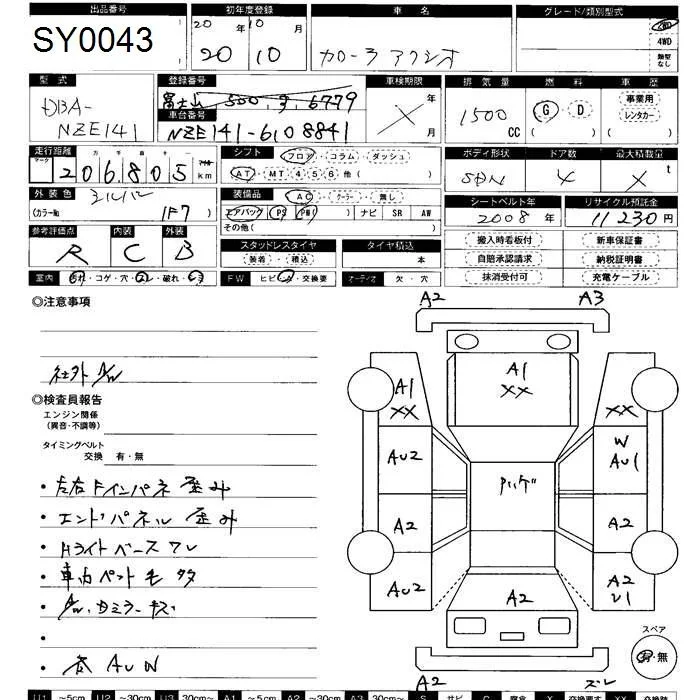 X | DBA-NZE141 | 1NZ-FE | FF | CVT | 1496cc | 110ps(81kW)/6000rpm | AИ-92 | 1 440 000 | |
