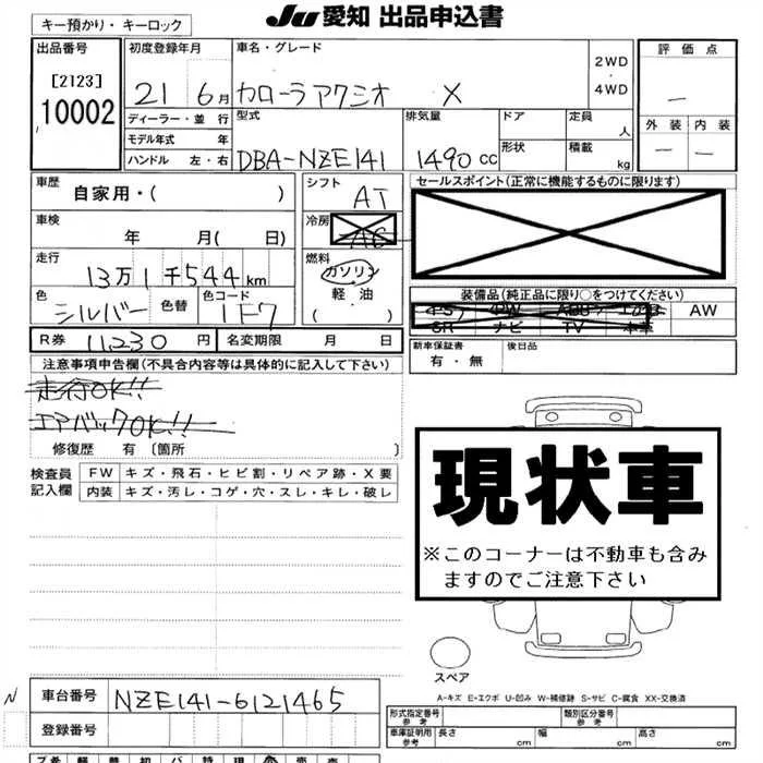 X | DBA-NZE141 | 1NZ-FE | FF | CVT | 1496cc | 110ps(81kW)/6000rpm | AИ-92 | 1 440 000 |