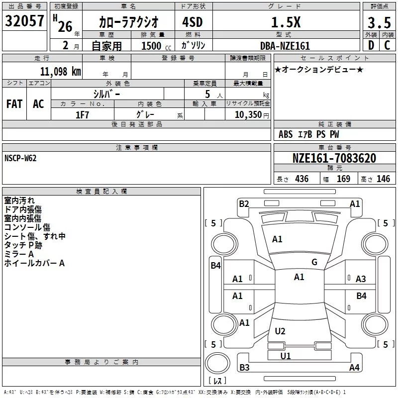 1.5X | DBA-NZE161 | 1NZ-FE | FF | CVT | 1496cc | 109ps(80kW)/6000rpm | AИ-92 | 1 481 143 | |