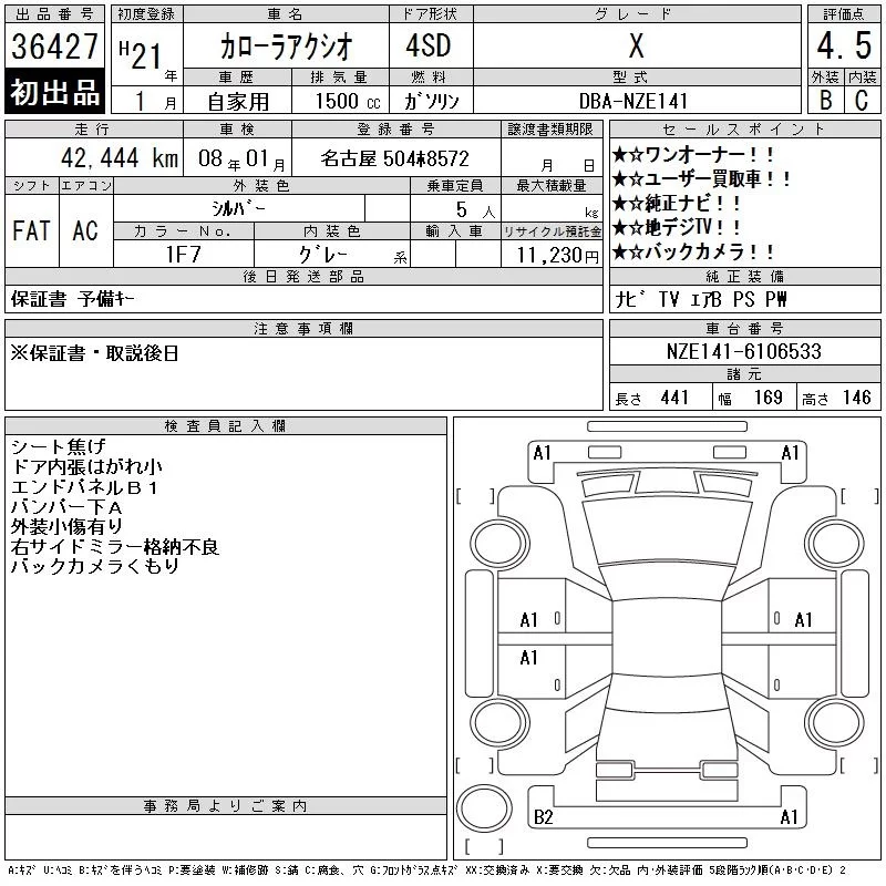 X | DBA-NZE141 | 1NZ-FE | FF | CVT | 1496cc | 110ps(81kW)/6000rpm | AИ-92 | 1 440 000 |