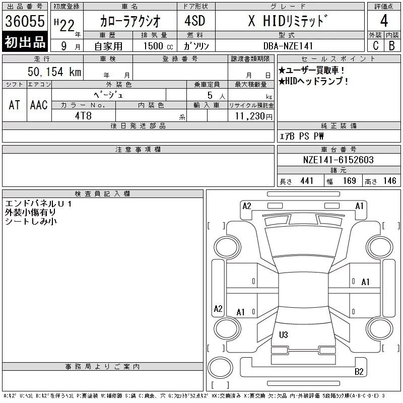 X | DBA-NZE141 | 1NZ-FE | FF | CVT | 1496cc | 110ps(81kW)/6000rpm | AИ-92 | 1 440 000 |