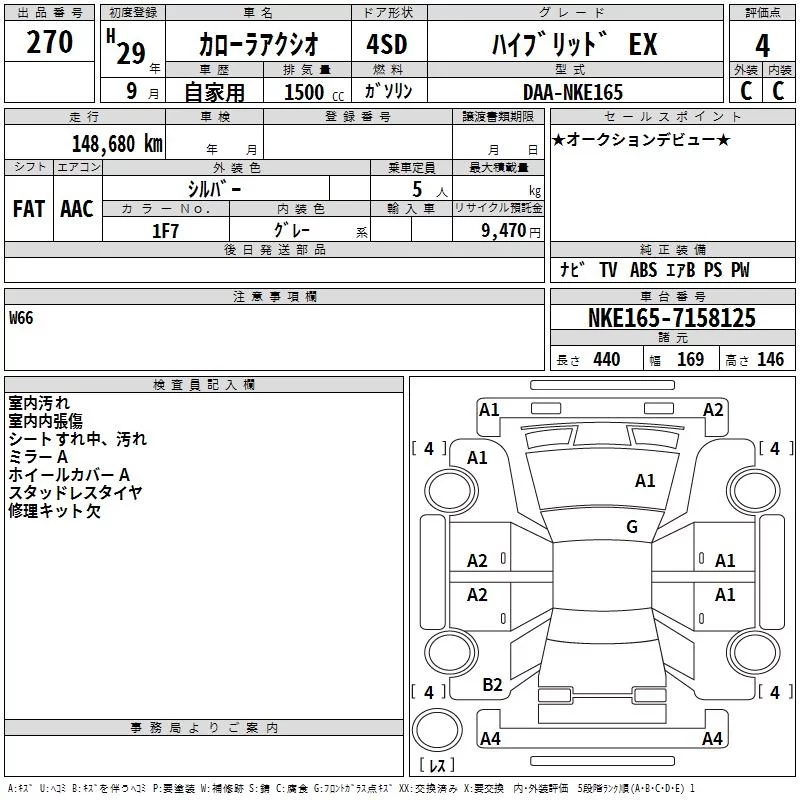 1.5G W。゚B | DBA-NZE164 | 1NZ-FE | Full-time 4WD | CVT | 1496cc | 103ps(76kW)/6000rpm | AИ-92 | 2 219 400 | |
