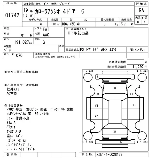 X HID SELECTION | DBA-NZE141 | 1NZ-FE | FF | CVT | 1496cc | 110ps(81kW)/6000rpm | AИ-92 | 1 585 500 | |