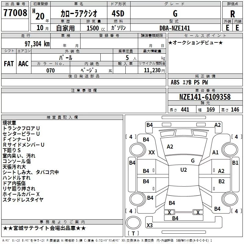 G | DBA-NZE141 | 1NZ-FE | FF | CVT | 1496cc | 110ps(81kW)/6000rpm | AИ-92 | 1 620 000 | |