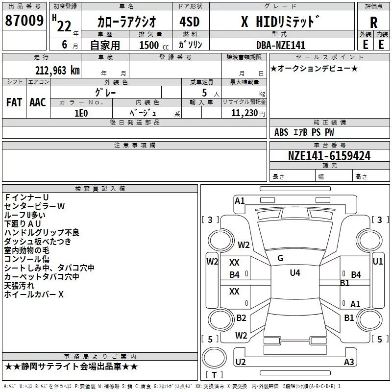X | DBA-NZE141 | 1NZ-FE | FF | CVT | 1496cc | 110ps(81kW)/6000rpm | AИ-92 | 1 440 000 |