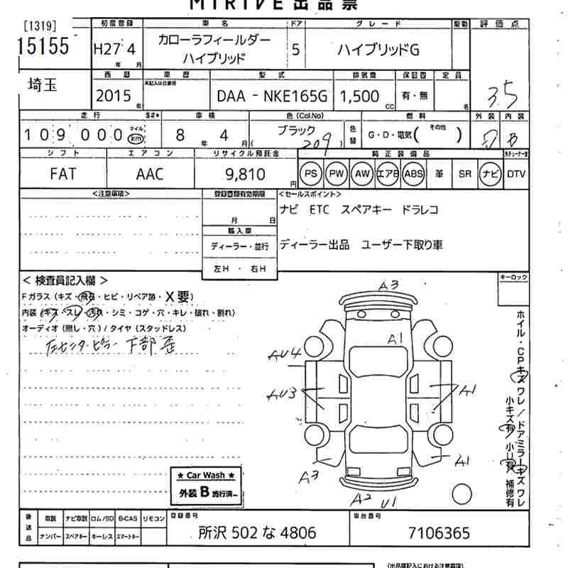Toyota COROLLA FIELDER 2015 • 1256876 ₽ под ключ из Японии