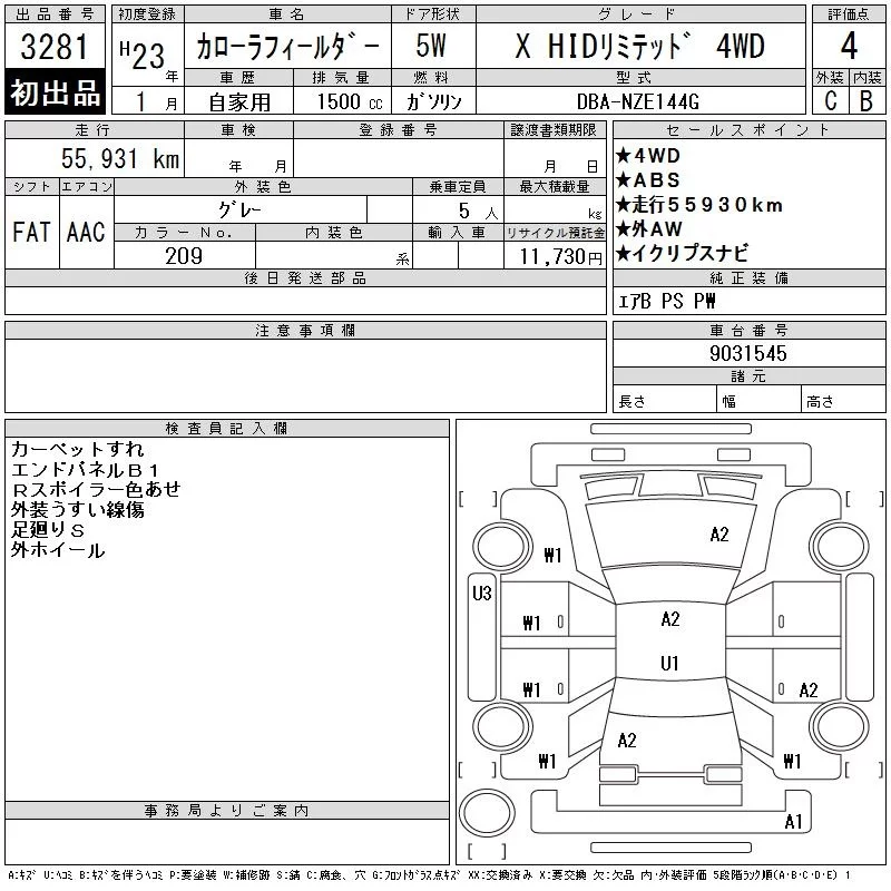 Toyota COROLLA FIELDER 2011 • 912393 ₽ под ключ из Японии