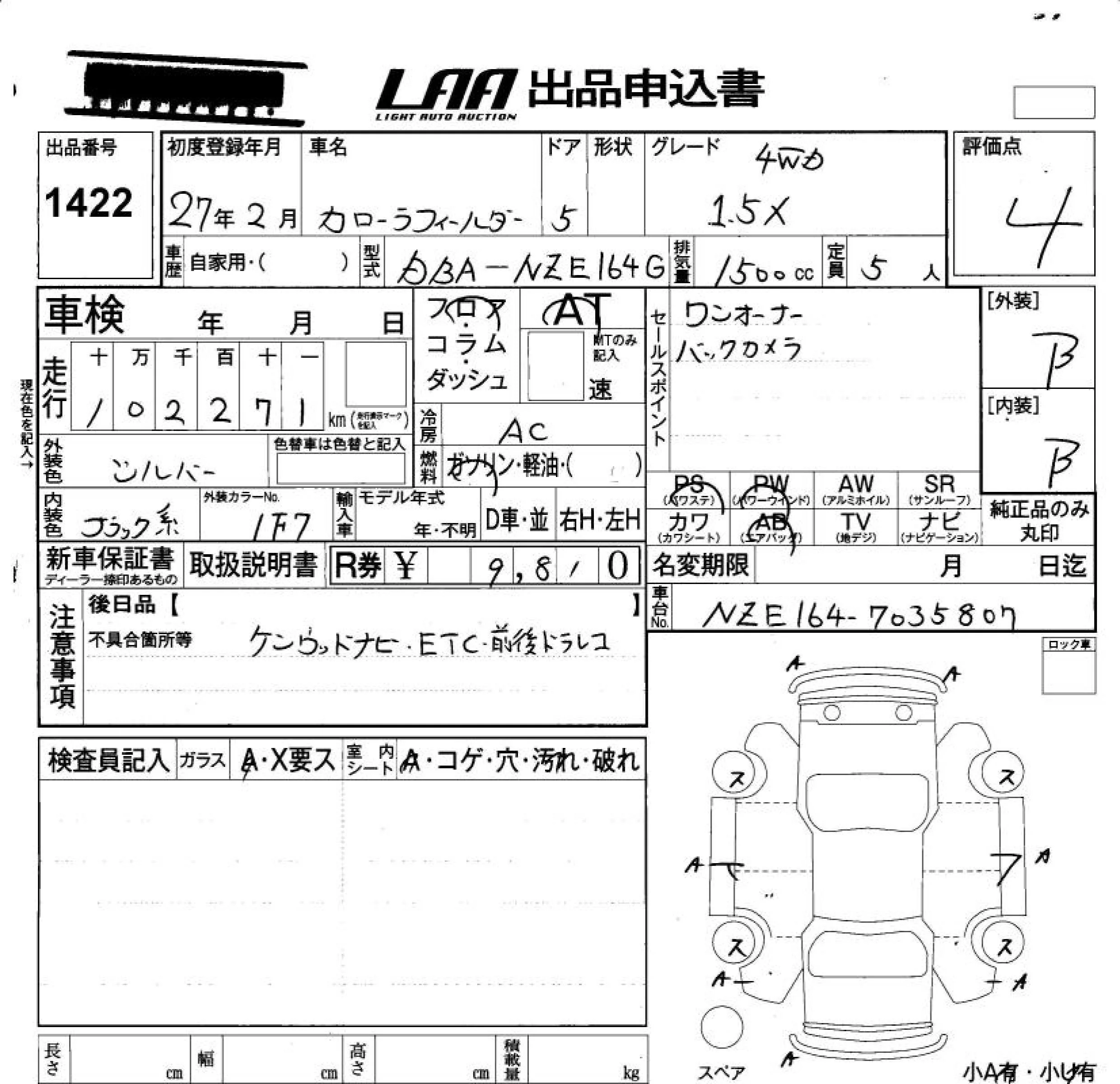Toyota COROLLA FIELDER 2015 • 1082461 ₽ под ключ из Японии