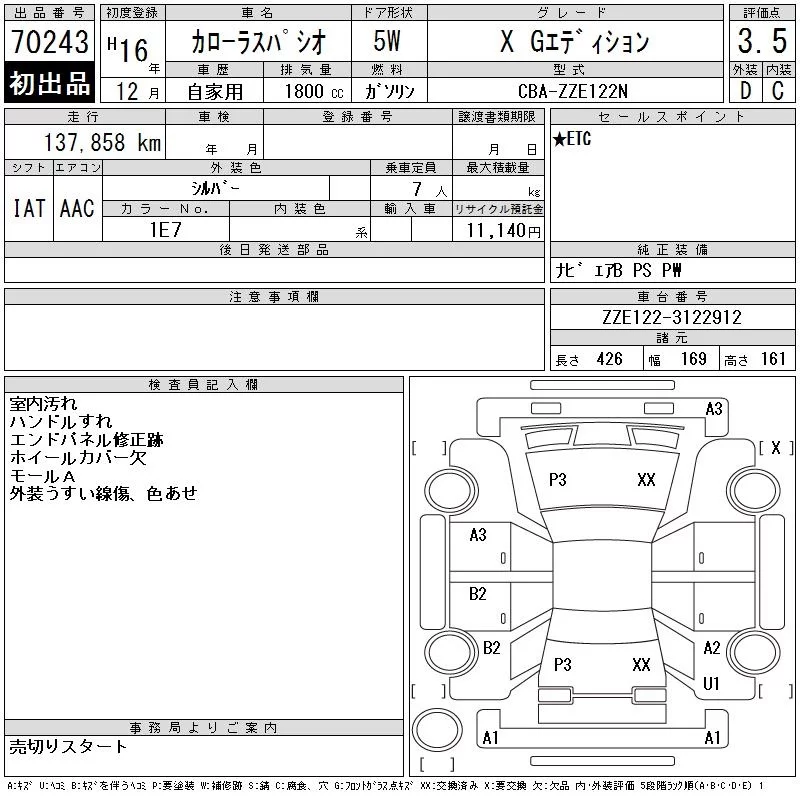 - Кузов: ZZE122N