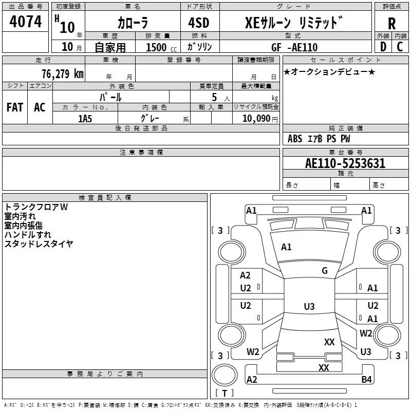 SE SALOON L LIMITED | GF-AE110 | 5A-FE | FF | 4AT | 1498cc | 100ps(74kW)/5600rpm | AИ-92 | 1 597 000 | |