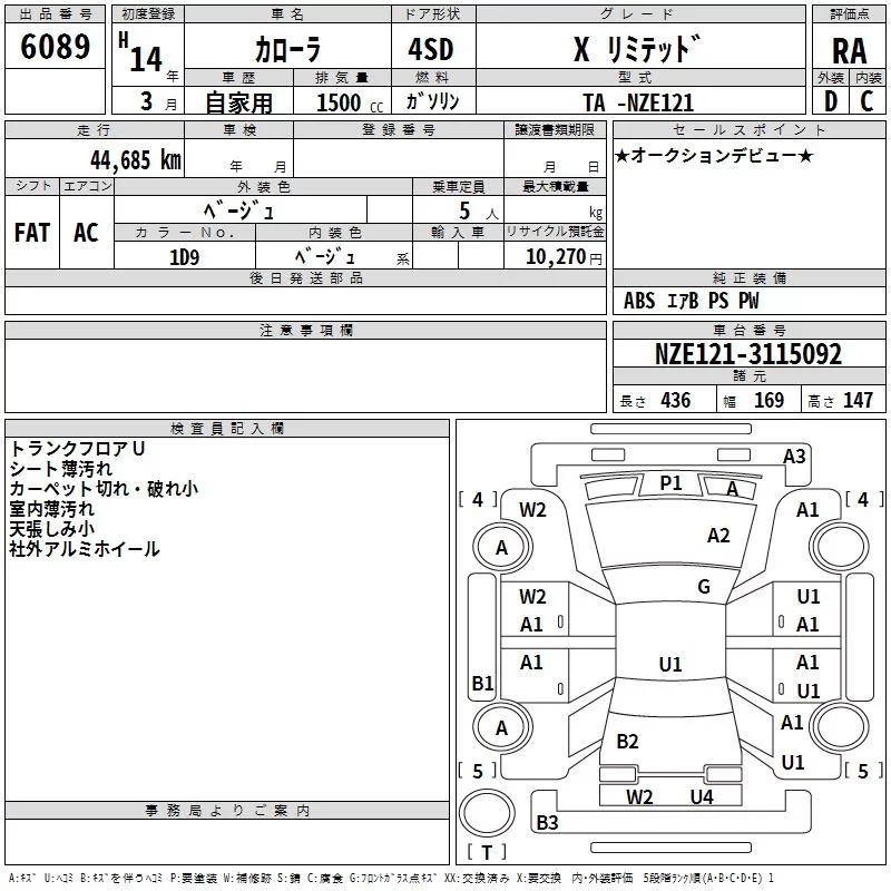 X LIMITED | TA-NZE121 | 1NZ-FE | FF | 5MT | 1496cc | 110ps(81kW)/6000rpm | AИ-92 | 1 253 000 | |